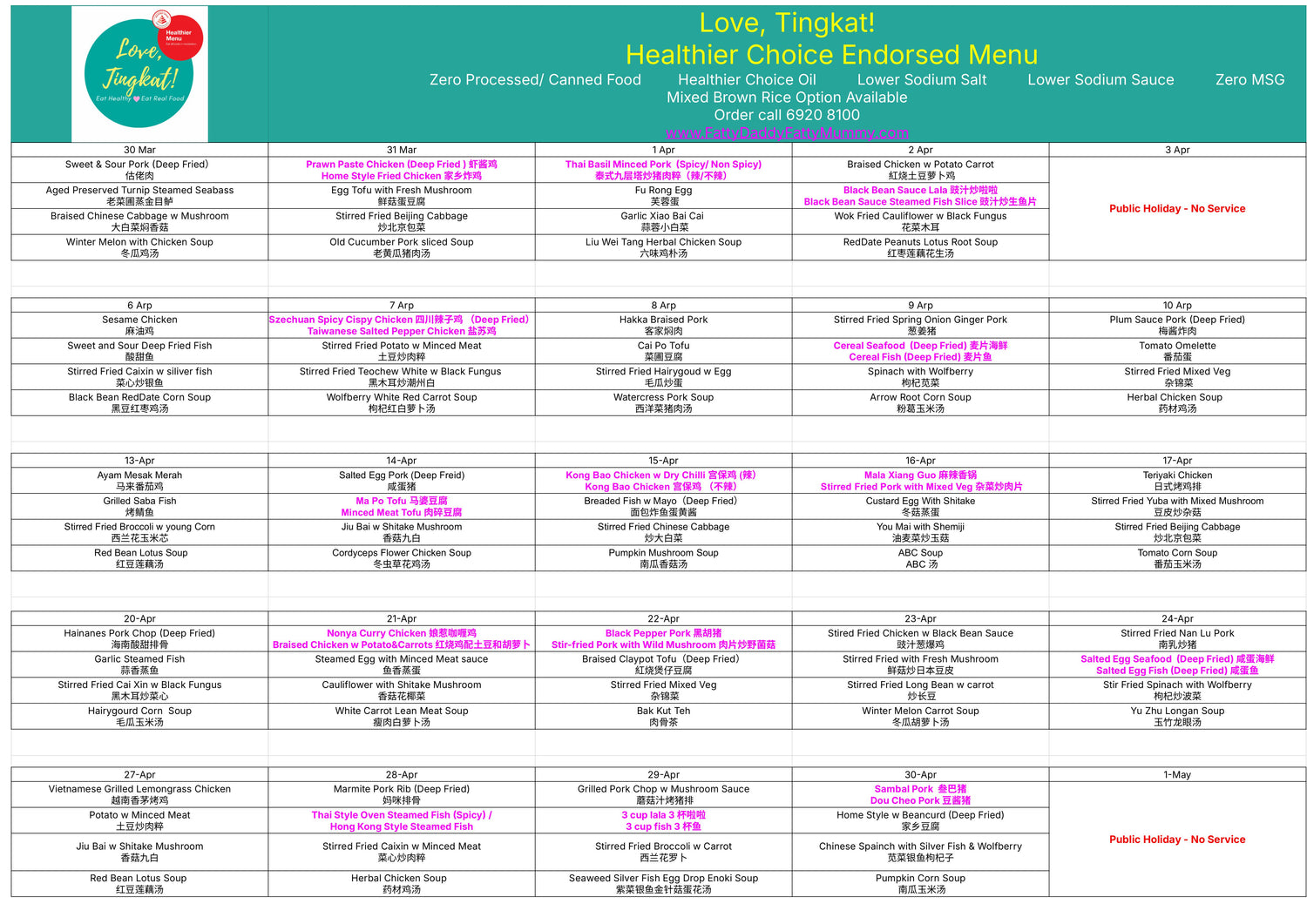 Love, Tingkat! (Healthier Choice Endorsed Menu)